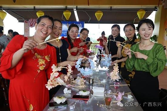 据悉,此次活动由防城港市妇女联合会主办,东兴市妇女联合会、东兴市总工会、东兴市科学技术协会、东兴市归国华侨联合会、东兴市社会科学界联合会、东兴市融媒体中心、东兴镇人民政府等单位共同承办。活动传承了中秋团圆的文化意蕴,搭建起中越妇女技能的交流平台,让两国妇女在互学互鉴中增进了解,深化友谊。下一步,东兴市将持续深化国门妇联联盟品牌建设,开展文化联谊、技能培训等特色活动,让中越友好之花在边境绽放绚丽光彩。(完)