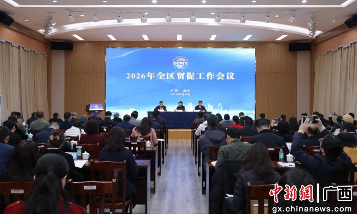 中新网广西新闻2月10日电 2月10日,2026年广西全区贸促工作会议在南宁召开。会议全面总结2025年全区贸促工作,部署2026年重点任务。广西贸促会党组书记、会长杨雁雁作工作报告。