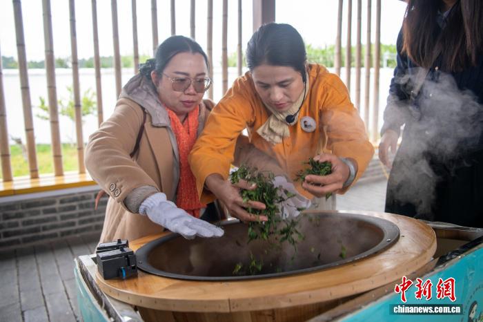 11月18日,来自泰国、柬埔寨、老挝等国家和地区的媒体人,在广西来宾市象州县学习古琶茶制作、茶礼等,体验中国茶文化。……