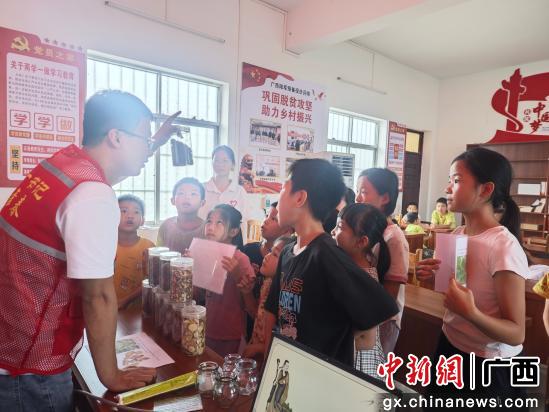中新网广西新闻7月8日电(施金雁 黎燕清)为进一步推动中华优秀传统文化在未成年人中的传承与弘扬,近日,“花乡小郎中”特色课堂在横州市峦城镇那檀村新时代文明实践站内举办,为村里的孩子们带来了一场丰富多彩的中医文化之旅。