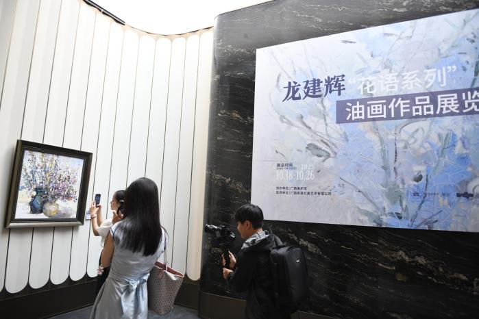 “艺居共生,澜璟入画”国家一级美术师龙建辉“花语”系列油画作品的首展当天在该项目部举行,澜璟与“花语”系列作品联名的文创作品首次发布。(林浩)