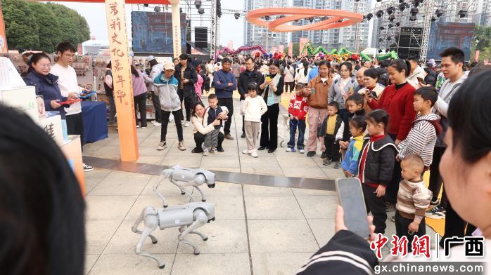从无人机变幻出的“茉莉花开”绚丽图案,到非遗舞狮与机器狗表演交相辉映;从横州鱼生争霸赛高手过招,到AI机器人吸引孩子们争相互动……精彩纷呈的活动为市民呈上一份丰盛文化盛宴。