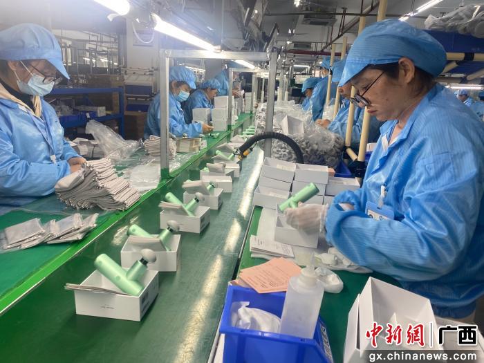 位于七星区信息产业园的桂林飞宇科技公司装配车间里,不少工人正在生产组装摄影稳定器、美容仪、筋膜枪等产品。