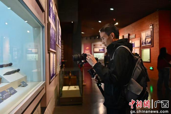 11月4日,“边关新貌·崇左有约——网络达人探秘边境高质量发展”采访团走进龙州起义纪念馆,通过解说员细致讲解,感知史料中革命先辈的红色精神。(俞靖)