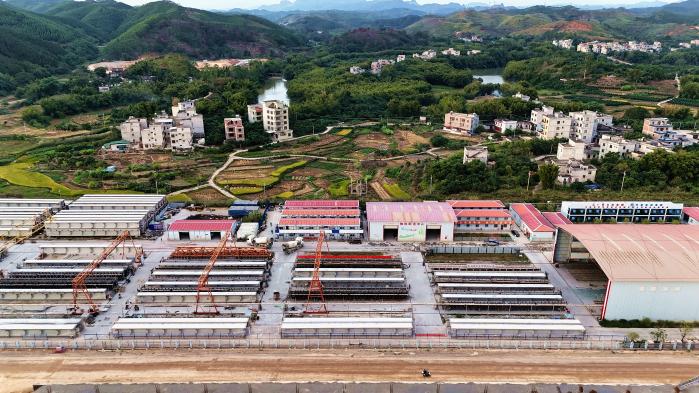 藤县北预制梁场位于广西藤县境内,占地面积92亩,承担柳梧铁路站前6标、柳梧铁路站前7标、柳梧铁路站前8标3个标段的预制及架设任务。为高效率、高质量完成生产任务,该梁场积极引入智能化、自动化设备,包括智造指挥中心、第三代弯曲机械臂、全自动定位网片焊机、智能喷淋养护系统、智能静载试验系统等,大力推进“工厂化、机械化、专业化、信息化”建设,实现了月产120片T梁的产能目标,为顺利完成T梁预制任务提供坚实的保障。