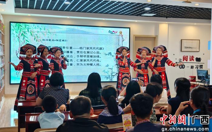 中新网广西新闻4月21日电(张宇薇)“蔗节如人节节高,代代相传德不休。甜意绵长润心田,仁德家风永长留……”近日,广西河池市巴马瑶族自治县图书馆内,悠扬的山歌旋律萦绕耳畔,掌声、笑声此起彼伏,该县“仁德山歌传家风 清廉长寿润万家”山歌传唱系列活动之“山歌里的文明”宣讲会正在这里举行。