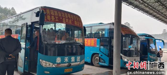 中新网广西新闻2月24日电(张棕林)2月23日,广西来宾市金秀瑶族自治县2026年首批赴粤务工“点对点”免费爱心专车正式启程。一辆辆满载务工群众的大巴车从金秀县城出发,奔赴广州、东莞、深圳、中山、珠海、开平等地企业,标志着金秀新春劳务输出和粤桂劳务协作工作按下“加速键”。