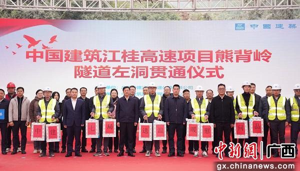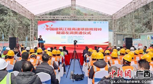 中新网广西新闻1月29日电 1月28日,广西江桂高速公路项目熊背岭隧道左洞举办贯通仪式。