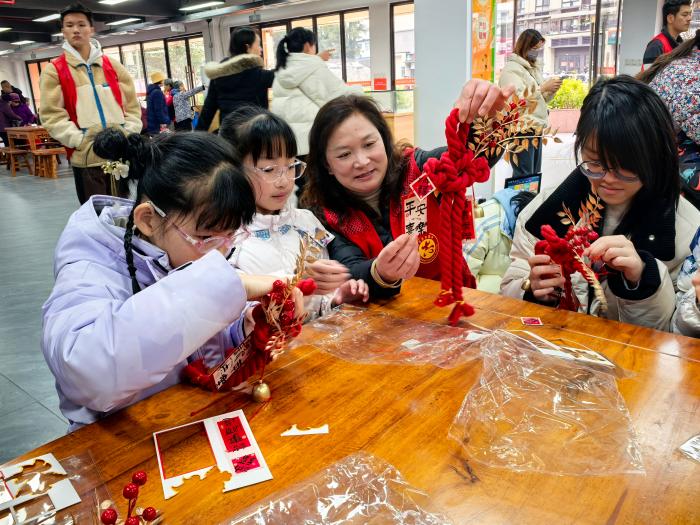 图为汇通社区居民一起制作春节手工。李小江 摄