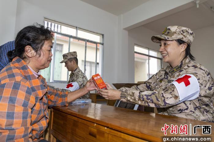 高妙村村支书兰金生介绍,经过这几年部队的持续帮扶,高妙村的村容村貌、居住条件持续改善,医疗教育水平逐年提升,民众幸福感、获得感明显增强。武警桂林支队先后帮扶上笑村、高妙村建设环村道路、文体活动中心、新建饮水工程等,2025年帮扶完成乡村“白改黑”建设。武警桂林支队乡村振兴小组下到村内调研帮扶成效及验收村内项目工程,并带领卫生队给行动不便的村民入户进行义务巡诊。