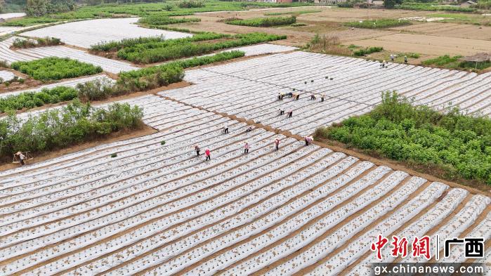 中新网广西新闻3月30日电(覃俊凯 钟绍杰 赵胜松)春风送暖,万物复苏。近日,在广西玉林市容县十里镇300亩高辣度辣椒种植基地里,一派热火朝天的春耕景象。农户们正抢抓农时,将一株株嫩绿的辣椒苗移栽到覆盖着薄膜的田中,为今年的丰收播下希望。