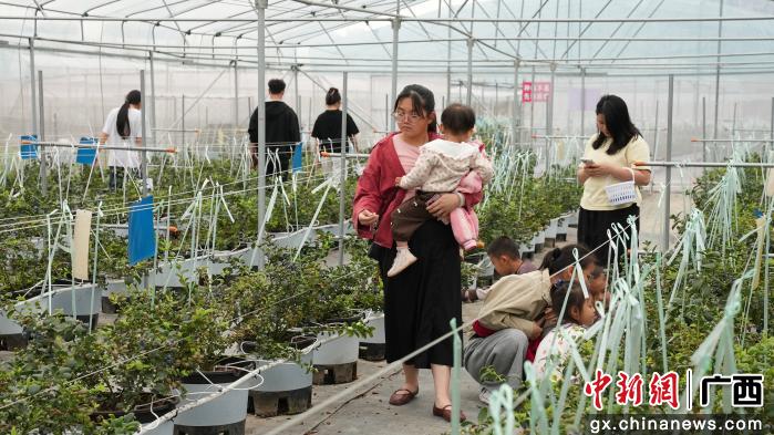 中新网广西新闻4月7日电(张桐千)春日,广西玉林市容县晴天蓝莓采摘园里一片生机盎然,硕果累累。这片于2025年年初种下的蓝莓,在经过一年多的精心培育后,今年终于迎来首次丰收,成为容县市民周末休闲采摘的新去处。