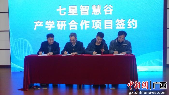 活动现场,广西师范大学省部共建国家重点实验室与广西一方天江制药有限公司,广西师范大学环境与资源学院与桂林云璟科技有限公司,桂林电子科技大学建筑与交通工程学院与桂林蓝港科技有限公司,桂林理工大学物理与电子信息工程学院与桂林立德智兴半导体有限公司,桂林理工大学商学院与桂林市赛路纳科技有限公司,桂林航天工业学院人工智能学院与桂林市高新置业投资有限公司分别进行了产学研合作签约。7所高校学院进行了现场推介。