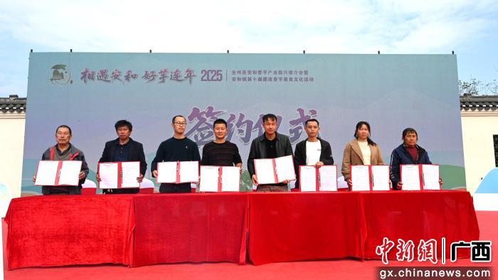推介会上全州的合作社和商家与农户签约达成680万斤、总值1250万元的产销合作,呈现“安和香芋”的品牌活力与市场潜力,传递出产业振兴的积极态势。