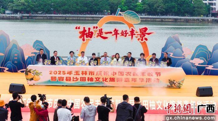中新网广西新闻11月3日电(梁富炎)秋韵如诗,柚香满城。近日,2025年玉林市庆祝中国农民丰收节暨容县沙田柚文化旅游嘉年华活动在容县绣江公园开幕,海外侨胞、广西区内外嘉宾与游客齐聚“天下奇楼 千姿容州”,共赴丰收之约。