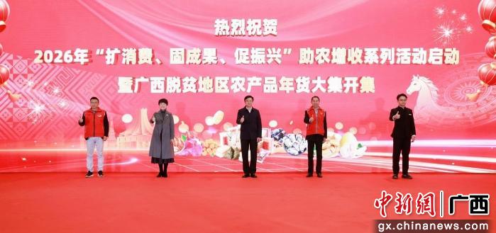 摘要提示:新春将至,八桂大地年味渐浓。2026年“扩消费、固成果、促振兴”助农增收系列活动启动暨广西脱贫地区农产品年货大集,23日在南宁启幕。