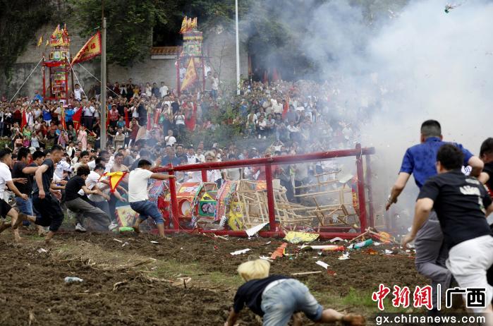 摘要提示:近日,广西贺州市富川瑶族自治县古城镇塘贝村,自治区级非物质文化遗产——抢花炮民俗活动盛大启幕,欢庆“三月三”民族佳节。