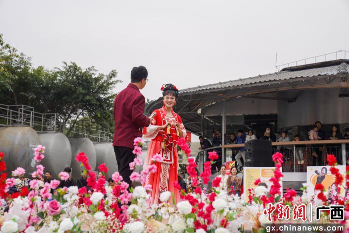 图为新一代刘三姐演员为观众献上山歌。王以照 摄