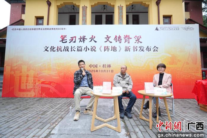 中新网广西新闻11月5日电(方俪颖)“‘救亡’就是我们的旗帜,抗战到底就是我们的决心,民族复兴就是我们的信念……”近日,在广西师范大学王城校区,伴随着现场深情的朗诵,由广西师范大学出版社主办的“笔刃烽火 文铸脊梁”——文化抗战长篇小说《阵地》新书首发活动拉开了序幕。