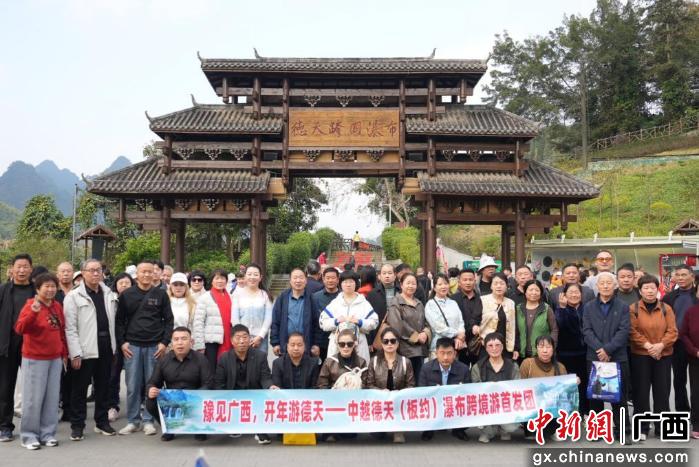 中新网广西新闻1月19日电 1月18日,广西德天跨国瀑布景区迎来一季度首个大型跨境一日游团队。