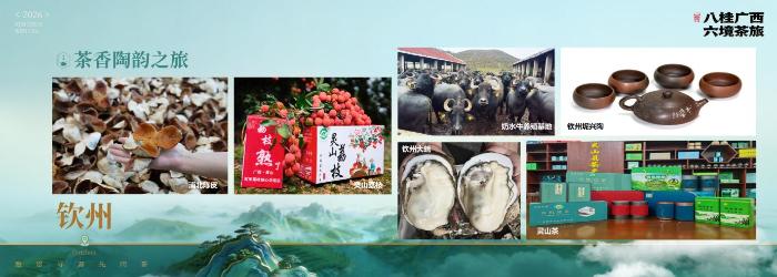 桂品好物:陈皮、灵山早春茶都是伴手佳礼,加上钦州坭兴陶茶器,更是茶与器皿的绝妙速配。还可带上灵山荔枝和奶水牛、钦州大蚝、官垌草鱼等“桂字号”品牌农产品,让这些“山珍海味”成为此次山海之旅的味觉延伸。