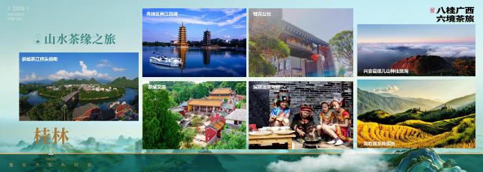 以“山水茶韵·诗意栖居”为主题,以桂林市的秀峰区和恭城瑶族自治县为主场,演绎山水人文相生、茶味诗境共鸣的桂茶哲学。来到桂林市秀峰区,可夜游两江四湖,于璀璨桂湖光影中品茗赏景;在桂花公社品尝桂香花茶,搭配桂花糕,桂花酒等风物产品,于桂花林中感受馥郁芬芳,了解一朵小小桂花的深加工产业。再乘车前往恭城,在油茶馆体验列入联合国非遗名录的瑶族油茶习俗,亲手捶打一臼油茶,喝一碗热腾腾的“爽神汤”,感受瑶乡烟火气,再尝一口甘柔如饴的恭城柿饼;乘竹筏游恭城河(茶江),尽赏“茶在江畔长,人在画中游”的喀斯特诗画景致。