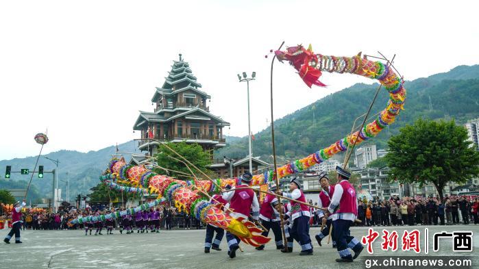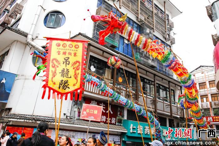 图为龙胜各族自治县龙狮闹元宵巡游活动舞吊龙表演。杨宗盛 摄