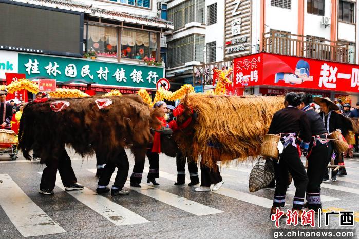图为龙胜各族自治县龙狮闹元宵巡游活动闹春牛表演。杨宗盛 摄