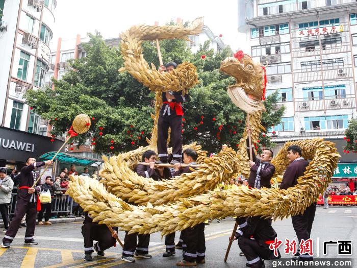 图为龙胜各族自治县龙狮闹元宵巡游活动舞吊龙表演。陆恒江 摄