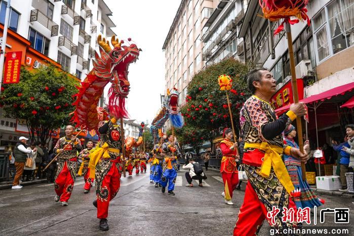 图为龙胜各族自治县龙狮闹元宵巡游活动现场。韦吉阳 摄