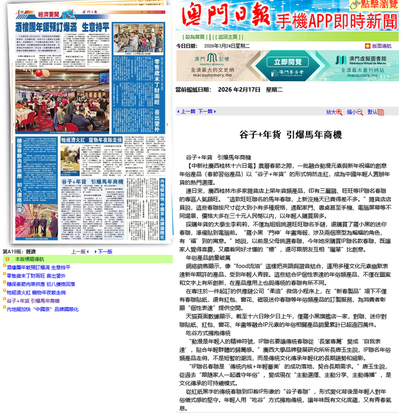 “动漫是年轻人的精神符号,IP联名要让传统春联从‘长辈专属’变成‘自我表达’,贴合年轻群体的归属感。”广西大学品牌发展研究所所长唐玉生说,IP联名年俗类产品走俏,不是短暂的潮流,而是传统文化传承年轻化的长期趋势和缩影。