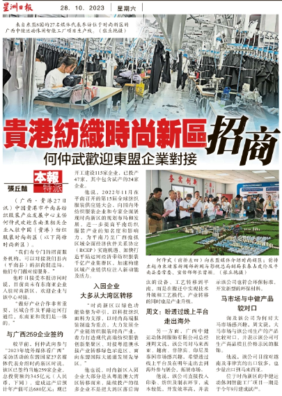 贵港纺织时尚新区招商 何仲武欢迎东盟企业对接