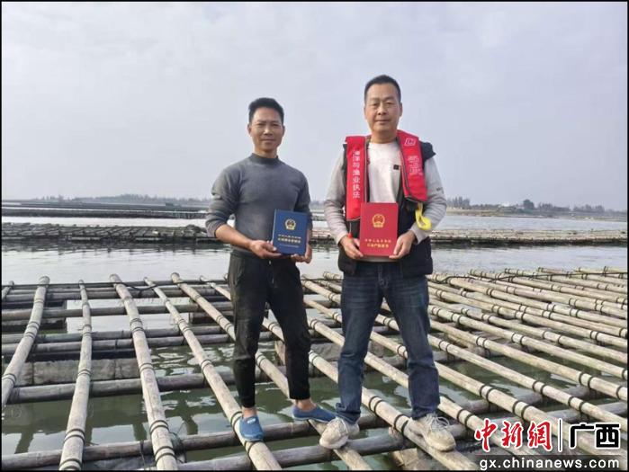 中新网广西新闻12月17日电 (唐豪 杨晓佼)冬日的钦州湾,暖阳洒在整齐划一的蚝排上,波光粼粼的海面下,肥美的大蚝正在茁壮成长。茅尾海渔民何国东捧着刚拿到的海域使用权证和养殖证,黝黑的脸上笑开了花:“守了半辈子的海,终于有了‘身份证’,这下扩大养殖心里有底了!”