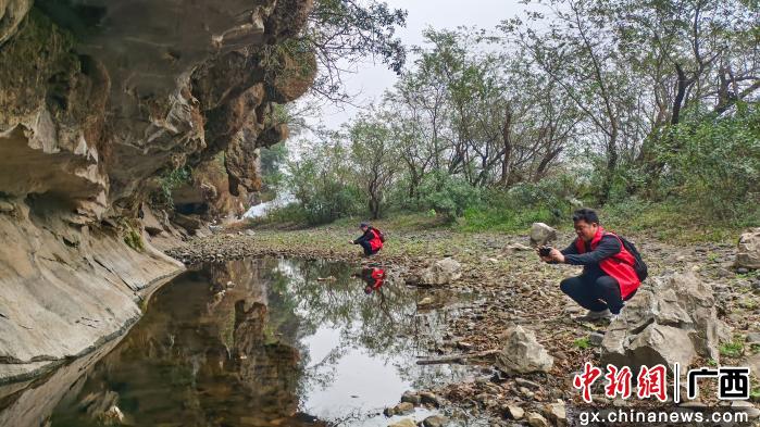图为“一江百屯 漓江步道”测评团专家在徒步线路经停点考察拍照。杨宗盛 摄