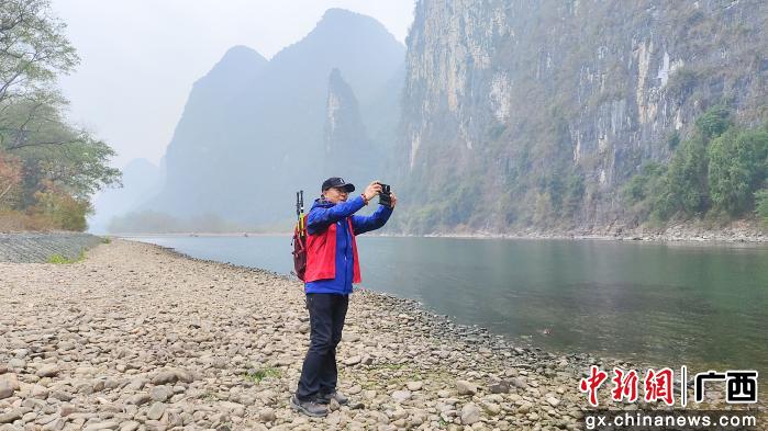 图为测评团成员在漓江岸边拍摄。杨宗盛 摄