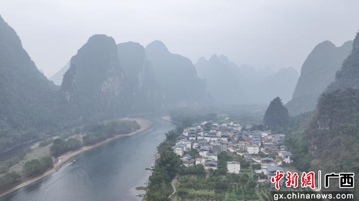 图为漓江步道沿途的浪石村风光。(无人机照片)杨宗盛 摄