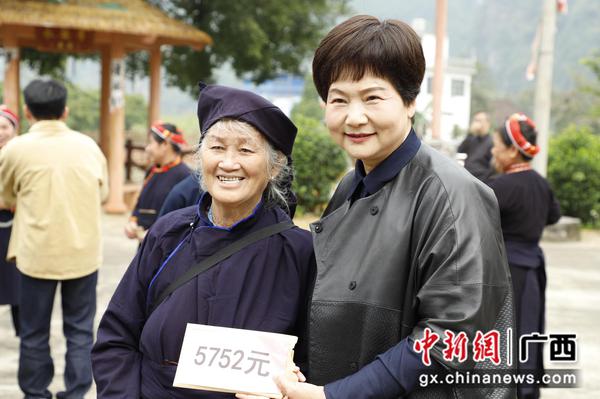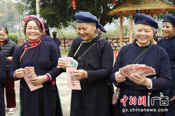 广西龙州壮族织娘领取收益金 满怀丰收喜悦迎新年