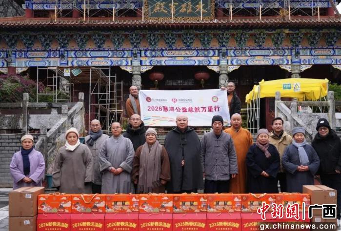 中新网广西新闻1月25日电 1月19日至1月23日,由无锡灵山慈善基金会慧海公益基金发起,广西佛教协会、广西协力扶助基金会、桂林市政协、桂林市仁济慈善基金会共同开展的2026慧海公益慈航万里行暨广西佛教协会春节公益慰问活动,在桂林举行。