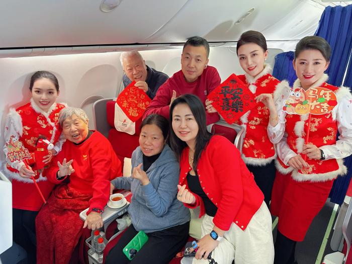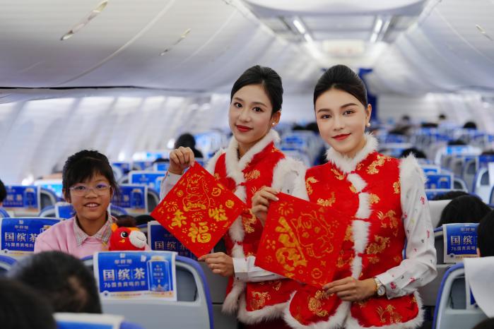 “一路有歌声、有互动、有祝福,孩子们玩得特别开心,这是我们度过最特别、最有意义的一次空中新年。”带娃出行的旅客王女士欣喜地表示。