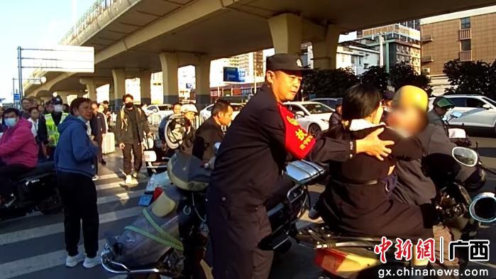 出站后,民警在路边紧急拦下一辆热心群众的电动车,协调搭载董女士母子火速前往最近的瑞康医院。在将董女士母子送上电动车后,民警一边疏导交通,一边指引方向,电动车迅速驶向医院。