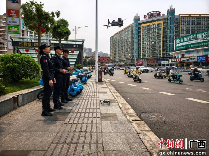 贵港警方利用无人机开展巡查和安全防范提醒工作