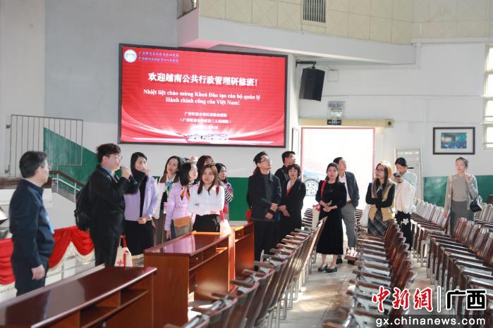 中新网广西新闻11月26日电(李金戈)11月24日,由商务部主办、商务部国际商务官员研修学院承办的越南公共行政管理研修班代表团一行25人,到位于广西桂林市的广西壮族自治区南溪山医院参观考察。