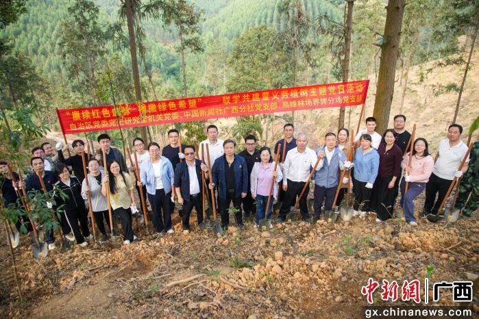 摘要提示:3月13日,广西壮族自治区党委党史研究室、中国新闻社广西分社与广西国有高峰林场的党组织,联合开展“赓续红色血脉,播撒绿色希望”联学共建暨义务植树主题党日活动。