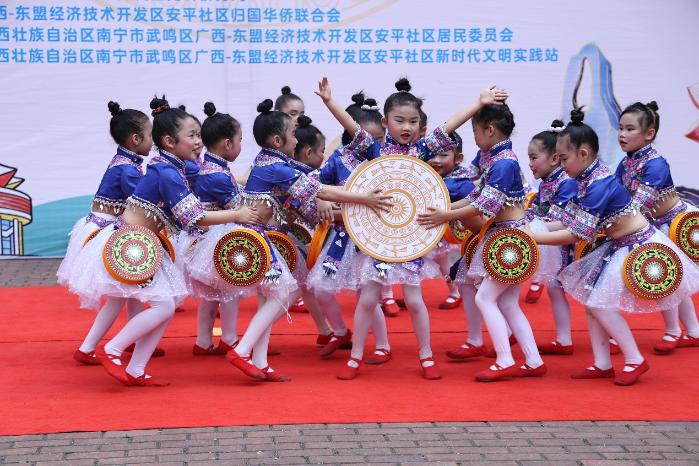 摘要提示:日前,一场以“非遗润侨区 浓情三月三”为主题的铸牢中华民族共同体意识活动,在广西—东盟经开区宗信大帽天街小区精彩上演。文艺展演、民族体育竞技、特色体验等多元形式轮番登场,吸引200余名机关代表及社区居民热情参与。