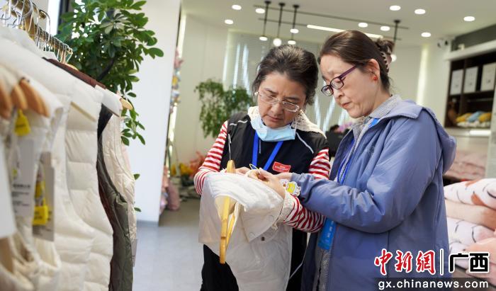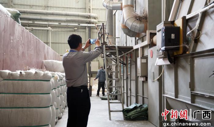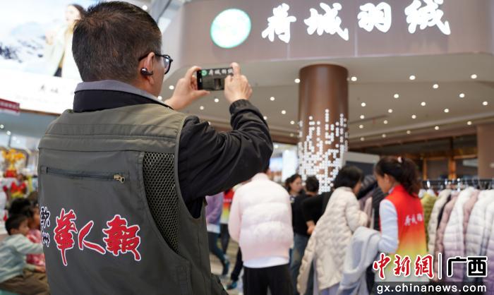图为媒体记者在港南羽绒企业采访拍摄。涂丽莎 摄