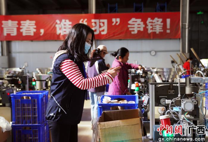 图为媒体代表参观港南羽绒企业。港南区融媒体中心供图
