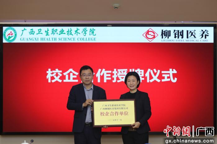 中新网广西新闻11月14日电 11月12日,广西卫生职业技术学院与广西柳钢医养集团有限公司校企合作签约暨授牌仪式举行,双方共同为“教学实习基地”揭牌。