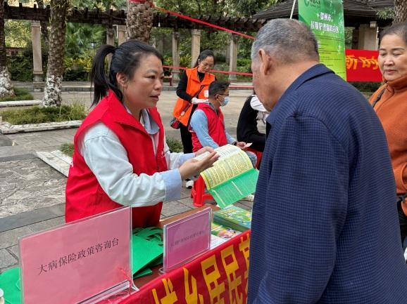 作为此次宣传活动的代表,中国人寿贺州分公司工作人员穿梭于人群之中,主动与老人们打招呼,耐心地为现场的群众解答关于城乡居民大病保险、长期护理保险以及“贺惠保”的相关政策。他们用通俗易懂的语言,将原本晦涩难懂的保险条款和政策内容,转化为生动形象的案例和实际生活中的应用场景,让周边群众能够更加直观地理解这些政策背后的意义与价值。