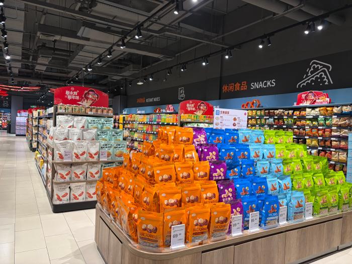 位于桂林市临桂区吾悦广场负一层的永辉超市,门店经过重新规划,商品总数达8707支,其中新引入商品占比高达34%,并特别引入了54支胖东来自有品牌商品,进口商品占比提升至25%。整体商品结构已达到胖东来商品结构的80%以上,在优质平价的基调下实现了品质的跨越式升级。