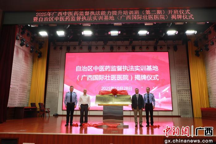 开班仪式期间,举行了自治区中医药监督执法实训基地(广西国际壮医医院)揭牌仪式。